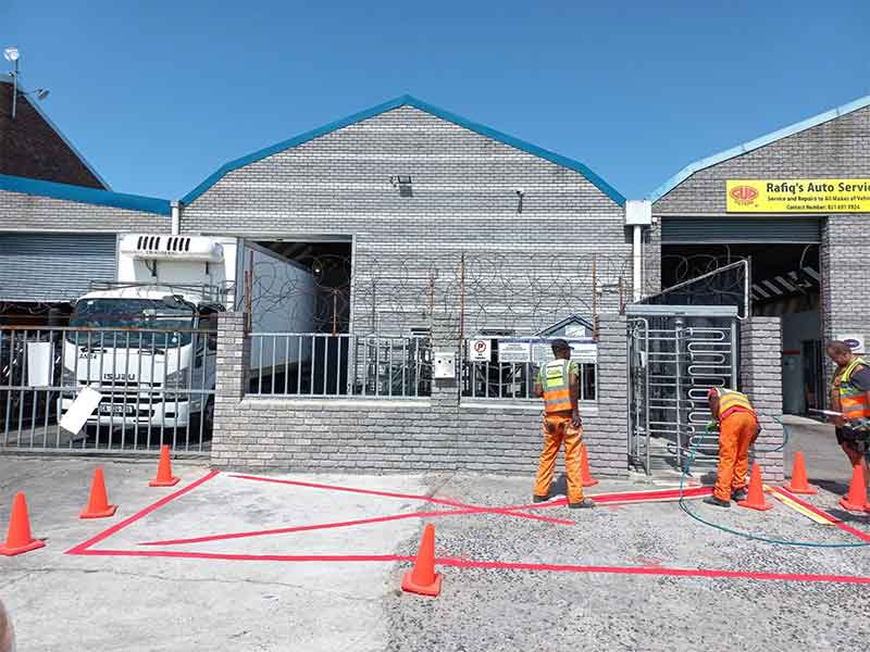 - Materials: Plascon TP Paint for asphalt surfaces and Plascon BTP for cement surfaces